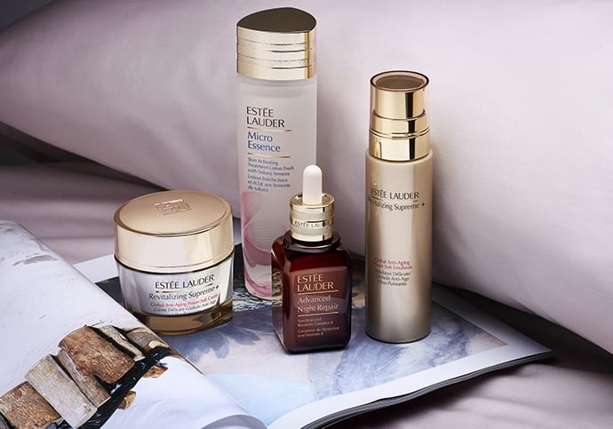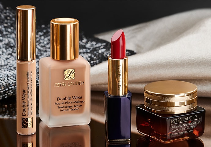 Prepara a pele com as nossas gamas de tratamento e depois aposta numa maquilhagem nude ou num estilo sofisticado. Descobre ou aproveita novamente os benefícios específicos da nossa dupla icônica para uma tez perfeita: o nº 1 Advanced Night Repair Serum e a base mais vendida, Double Wear.