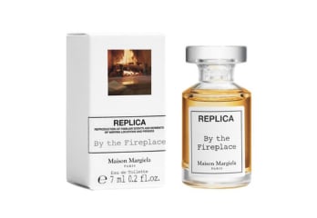 O frasco parece ter sido retirado de uma prateleira de boticário e a sua frente ostenta a mesma etiqueta de tecido que as peças da coleção REPLICA Couture da Maison Margiela.