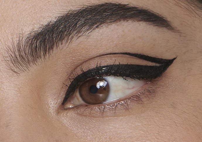 Se tu desejas obter um "contorno gráfico" nos teus olhos, desenha uma vírgula na parte externa do olho para estender a linha inferior do contorno.